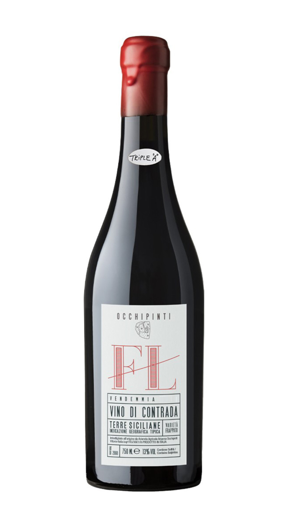 Il Frappato “FL” proviene da viti ad alberello dell’antica contrada Fossa di Lupo che guardando dritti i Monti Iblei. Il timbro olfattivo è grazioso e raffinato, ricorda principalmente la frutta rossa, le rose, le spezie mediterranee e il mare. Il gusto è molto fine, delicato e piacevole, dotato di una elegante freschezza. Vino fatto come una volta con metodi artigianali, Triple A