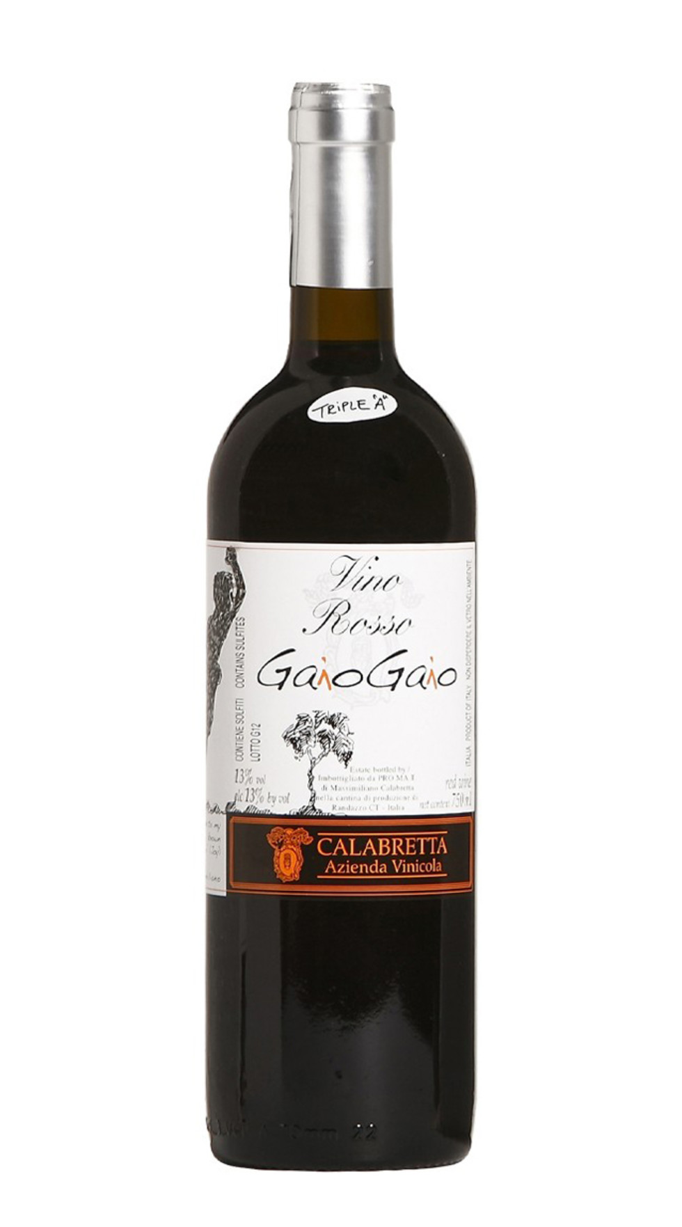 Il vino rosso “Gaio Gaio” è prodotto da una delle cantine storiche del territorio dell’Etna. La famiglia Calabretta si dedica alla viticoltura fin dai primi del ‘900 e oggi coltiva 11 ettari di vigna nel territorio comunale di Randazzo, sul versante settentrionale del vulcano. Da sempre legata alle più antiche tradizioni del territorio, non è mai scesa a facili compromessi con il gusto internazionale, continuando a realizzare vini di grande personalità e dal profilo tipicamente territoriale. Le vigne sono coltivate ad alberello, a un’altitudine attorno ai 700 metri sul livello del mare, su suoli prevalentemente composti da sabbie e pietre laviche. In campagna si utilizzano solo zolfo e rame e le viti crescono tra ginestre, fichi d’india e arbusti della macchia mediterranea, che creano una preziosa biodiversità ambientale. Il lavoro in cantina è ridotto al minimo, in modo da non snaturare il profilo varietale delle uve e conservare la cifra territoriale del vulcano.