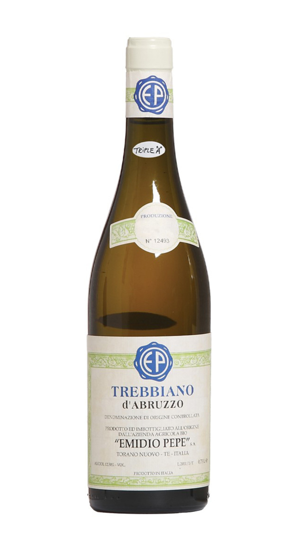 Il Trebbiano d’Abruzzo di Emidio Pepe è un bianco di notevole espressività e carisma. Al naso si avvertono note floreali, lievemente ammandorlate e di frutta bianca delicata. Di bellissima mineralità al palato, rinfrescante e deciso. Notevole il suo sviluppo negli anni. Vino Biologico, fatto come una volta con metodi artigianali, Triple A